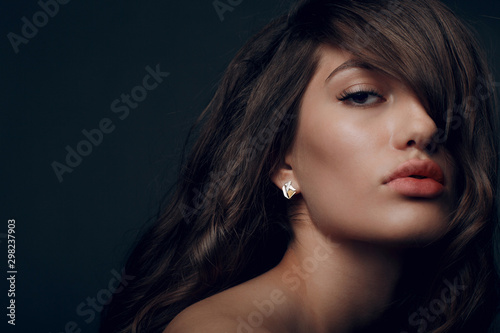 Portrait of beautiful young brunette woman with healthy fluffy hair
