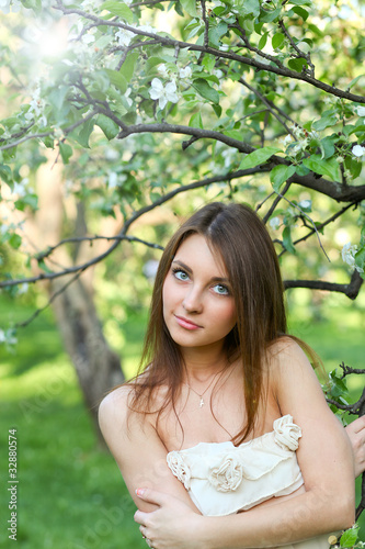 face, female, field, flower, girl, gorgeous, grass, green, happy, human, adult, astonish, attractive, beautiful, bloom, blossom, casual attire, caucasian, cheerful, colours, cute, cutie, delight, dream, enjoyment, idylli, landscape, light, love, meadow, nature, 1, outdoors, person, portrait, positive, pretty, relax, rest, sensuality, sky, smile, smiley, spring, summer, tenderness, tree, white, woman, young