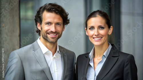 Portrait of Business Partners Confident Man and Woman in Suits, Professional Success, Corporate Teamwork, Businesspeople, Collaboration, Office, Leadership