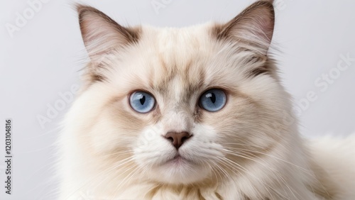 Portrait of Cream point ragdoll cat on grey background
