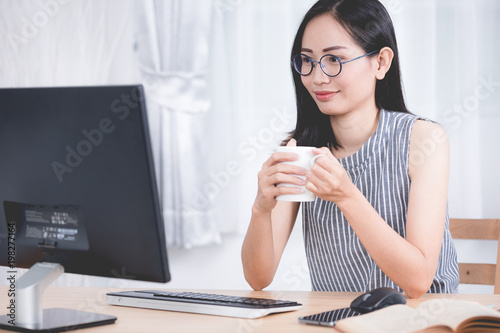 Portrait of Cute Asian woman using peronal computer