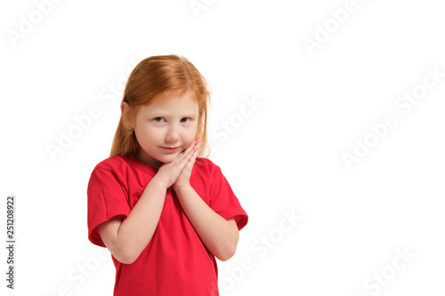 beautiful, isolated, little, hand, background, caucasian, children, cute, emotion, expression, face, female, fun, girl, hand, children, people, person, portrait, pretty, studio, white, young, chin, funny, head, hold, smile, view, admiration, sweetheart, fashion, adorable, cheerful, childhood, friendly, gesture, human, joy, lovely, nice, 1, posing, small, sweet, youth, facial, redhead, t-shirt