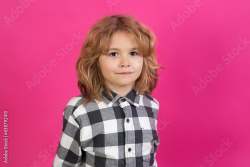 Portrait of cute smiling child, isolated studio background. Happy kid, happy and smiling emotions.