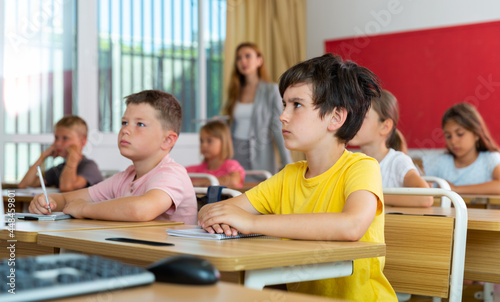 boy, schoolboy, schoolchild, school, children, elementary, primary, children, children, class, classmate, pupil, classroom, student, studying, study, learn, lesson, educating, cognition, schooling, learning, spelling, drawing, indoor, desk, sitting, exercise, notebook, homework, copybook, emotional, expression, person, occupation, lifestyle, portrait, schoolkid, cognition, smart, modern, youth, european, american, german, russian, casual attire