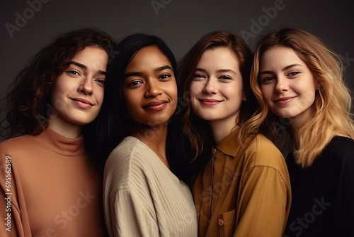 Portrait of diverse women different races, skin tones. Women’s History Month