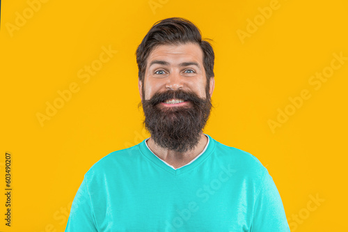 portrait of excited bearded man. portrait of bearded man isolated on yellow.