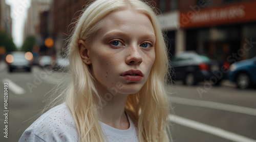 fashionable, modern, casual attire, lifestyle, city, street, look, appearance, blond, style, fashion, lipstick, cool, unique, urban, albino, portrait, beauty, woman, beautiful, model, pretty, female, 1, blond, adult, white, girl, albinism, hair, face, closeup, stylish, trendy, head, light, one person, studio shot, real people, attractive, studio, strange, unusual, soft