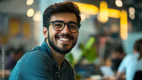 Portrait of happy success man working in a busy modern workplace, Startup coworker concept