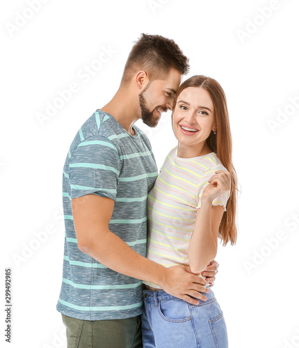 Portrait of happy young couple on white background