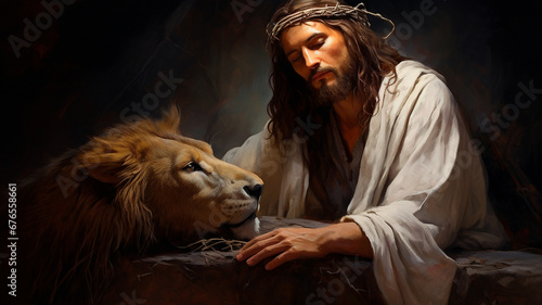 Portrait of Jesus Christ with a lion