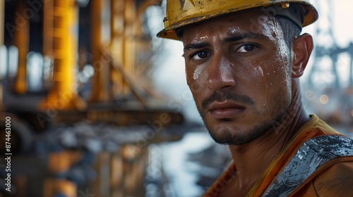 Portrait of Latin American construction worker looking at camera.