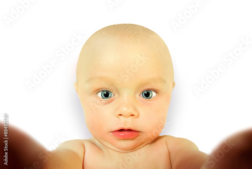 baby, portrait, selfie, cute, funny, isolated, childhood, himself, children, white, boy, people, person, infant, hold, camera, little, human, innocence, male, small, lying, healthy, face, adorable, looking, beautiful, children, gorgeous, sweet, horizontal, only, 1, curiosity, eye, youth, blue, indoor, photo, newborn, caucasian, young, fun, happiness, happy