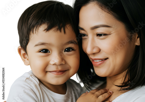 mother, son, children, family, asian, hugs, portrait, love, happiness, smile, eltern, children, together, bond, human relationships, cheerful, joyful, young, adorable, cute, childhood, well-being, closeup, black background, white shirt