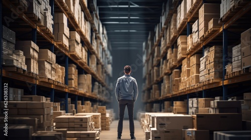 Portrait Of Manager In Warehouse. wholesale, logistic, people and export concept. Generative Ai.