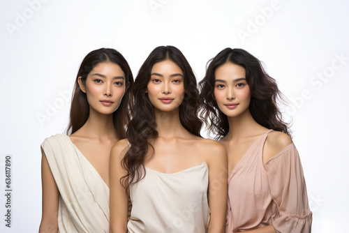 Portrait of many attractive female fashion models and looking at the camera. Diverse ethnic group of beautiful women with natural beauty and glowing smooth skin.