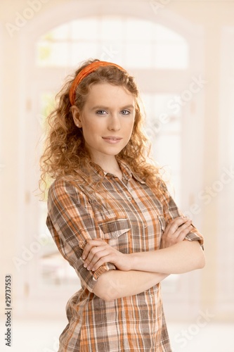 Portrait of pretty young girl at home smiling