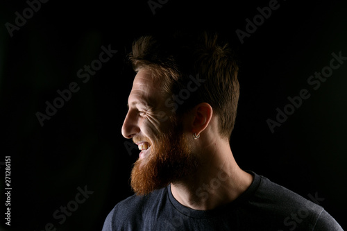 portrait, man, background, black, low, key, wrinkle, young, happy, dramatic, dark, close, up, male, face, beard, light, adult, person, profile, silhouette, smiling, caucasian, model, shadow, closeup, attractive, human, lifestyle, photogenic, look, side, head, expression, youth, t-shirt, casual attire, cut, confident, guy, emotion, facial, thinking, mystery, mysterious, stare, stubble field, people