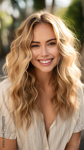 Portrait of Radiant Young Woman with Gorgeous Blonde Hair Exhibiting Confidence and Style