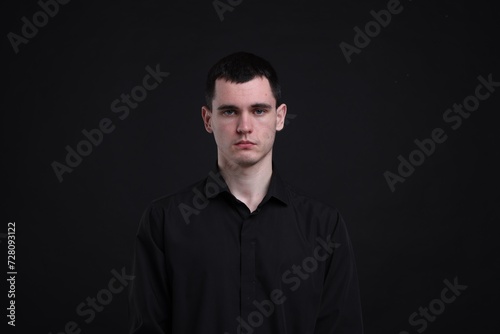 Portrait of sad man on black background