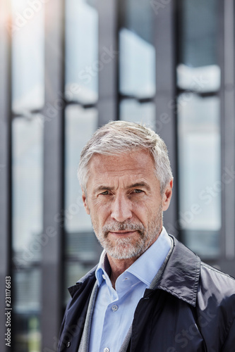 Portrait of serious businessman with grey hair and beard