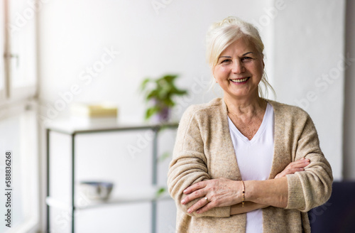 grey hair, face, real people, senior, indoor, loft, window, home, mature adult, adult, one person, attractive, successful, people, confident, beautiful, female, woman, apartment, studio, smiling, happy, positive, joy, active, elderly, grandmother, lifestyle, old, portrait, living room, freelancer, creative, business, office, workplace, entrepreneur, modern, success, occupation, job, businesswoman, working, small business, desk