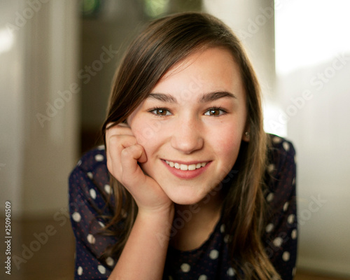 Portrait of smiling teenage girl (12-13)
