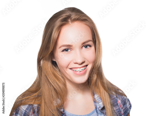 adult, appearance, beautiful, blond, braces, business, care, childhood, clean, cosmetic, cute, dental, dentist, expression, face, female, feminine, fix, floss, girl, happiness, health, healthy, human, hygiene, isolate, isolated, metal, mouth, orthodontic, orthodontist, overbite, portrait, presentation, shot, smile, stainless, steel, student, teenage, teenage, teeth, treatment, white, woman, young, youth