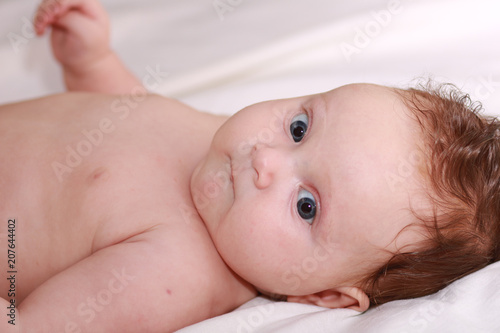 Portrait of the newborn child. Kid.