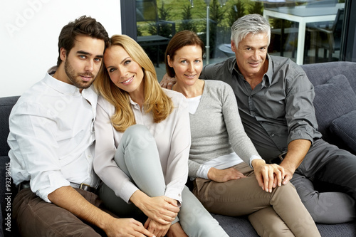 Portrait of two couples sitting together on a couch