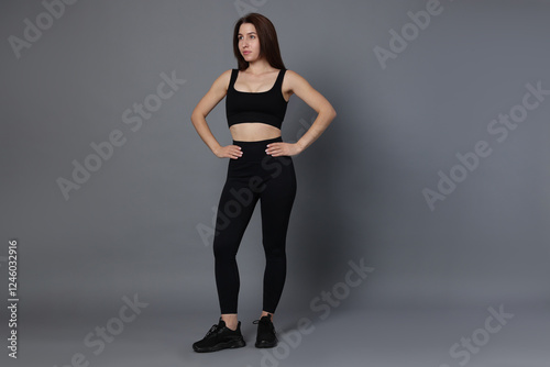 active, activity, adult, athlete, athletic, background, black, body, care, caucasian, energy, exercise, exercising, female, fit, fitness, full-length, grey, gym, healthy, hobby, leggings, leisure, lifestyle, loss, muscle, person, physical, portrait, power, slim, sport, sportive, sport, activewear, sportswoman, sporty, strength, strong, top, trainer, training, vitality, wellness, woman, physical exercise, young