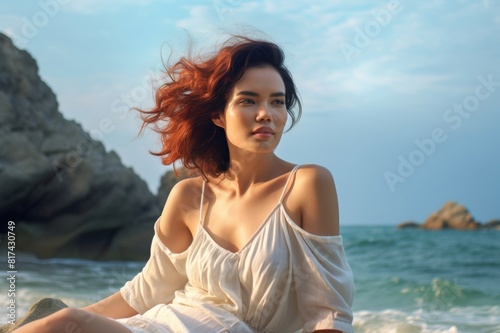 woman, beach, portrait, leisure, relaxation, coastal, serene, sand, sea, freedom, nature, tranquil, sunny, casual attire, holiday, enjoyment, peaceful, leisurely