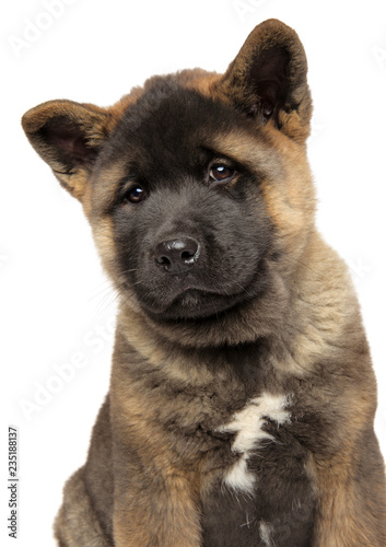dog, pet, akita, breed, puppy, animal, portrait, american, white, cute, pedigreed, black, domestic, isolated, fluffy, white background, whelp, puppy, animal themes, furry, studio, baby animal, young, big, healthy, faithful