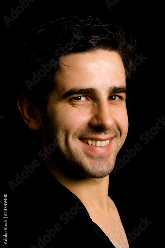 Portrait of young attractive man on a black background