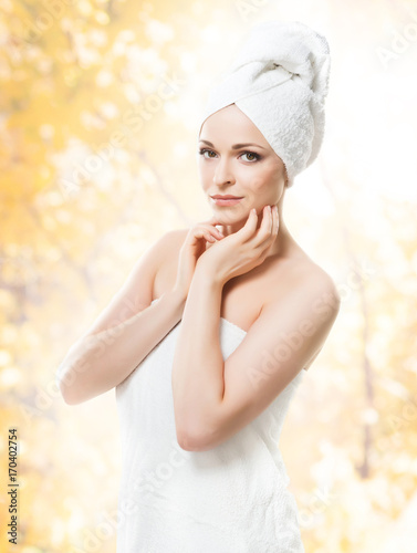 skin, facial, complexion, ageing, face, lifting, skincare, wellness, glare, nature, wrinkle, female, smooth, blurry, girl, woman, make-up, flare, make-up, background, health, brunette, health care, natural, attractive, white, clean, human, closeup, portrait, cute, smile, healthy, young, care, beauty, concept, head, beautiful, hygiene, fresh, spa, towel, bathe, happy, orange, pampering, calmness, autumn