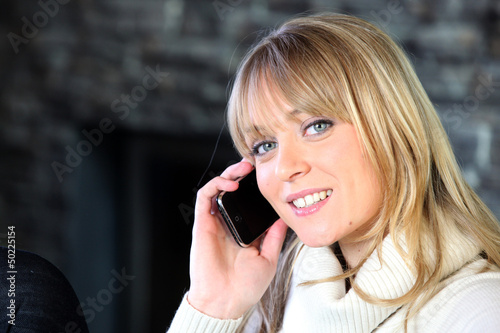 portrait of young blond woman on the phone