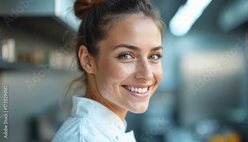 woman, chef, portrait, smiling, smile, happy, female, girl, uniform, cook, person, profession, kitchen, men at work, looking, face, hair, beauty, young, eatery, culinary, food, job, business, indoor, adult, head, caucasian, lifestyle, cheerful, expression, human, 1, ethnicity, attractive, professional, occupation, service, businesswoman, employee, positive, apron, preparation, dining, cookery, cooking, cafes, catering