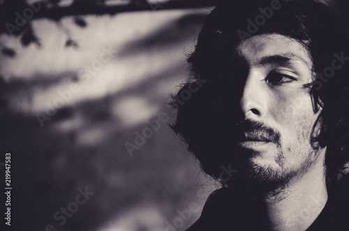 shirt, man, young, shadow, male, portrait, adult, beard, caucasian, photogenic, person, guy, people, background, serious, face, looking, camera, head, business, casual attire, confident, dark, fashion, grey, model, shoulder, stubble field, unshaved, hipster, moody, contrast, high, head shot, upset, worried, atmospheric, attractive, blue, ceo, complexion, copy space, corporate, dramatic, handsome man, intense, skin, studio, successful