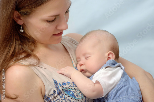 portrait of young mother keeping her baby
