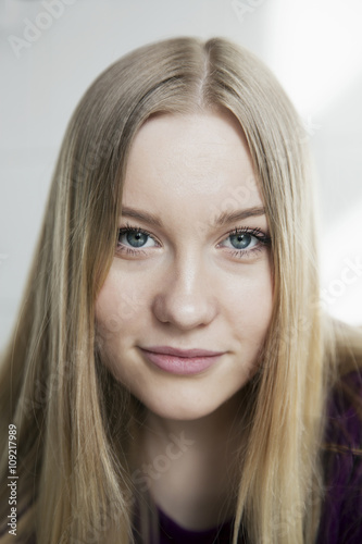 portrait, long hair, young, teenage girl, beauty, front view, girl, teenage, people, real people, indoor, waist up, vertical, 1, colours, missy, adult, woman, blond, stockholm, sweden, scandinavia, day