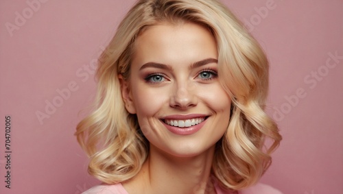 woman, pink, smile, beauty, smiling, face, hair, blond, person, blond, expression, model, people, 1, lady, closeup, happiness, teenage, looking, studio, cute, fashion, joy, natural, laugh