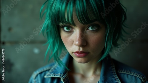 Portrait Of Young Woman With Green Hair