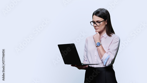 female, woman, white background, laptop, computer, girl, business, online, happy, young, cyberspace, student, businesswoman, shirt, beautiful, attractive, modern, lifestyle, work, 20s, technology, hair, isolated, leisure, connection, model, style, network, looking, study, career, browsing, fashion, cute, social, smile, emotion, wireless, fun, person, education, adult, mood, communication, freelance, joy, successful, caucasian