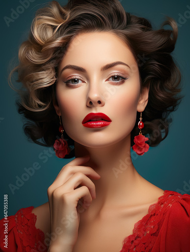 Portrait Sexy woman beauty face and Beauty Red Lips Makeup Detail , Lips Skin Care