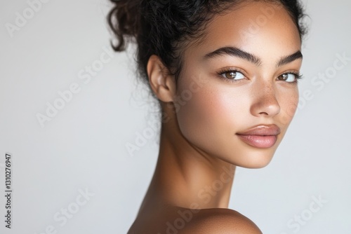 Portrait showcasing a woman with natural and glowing skin emphasizing beauty and elegance. Generated AI
