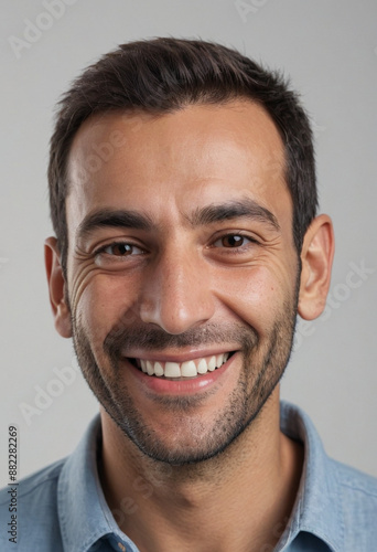 Portrait view of a regular happy smiling Cyprus man, ultra realistic, candid, social media, avatar image, plain solid background
