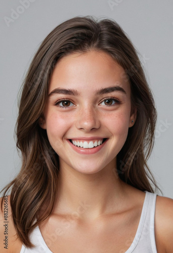 Portrait view of a regular happy smiling Georgia girl, ultra realistic, candid, social media, avatar image, plain solid background