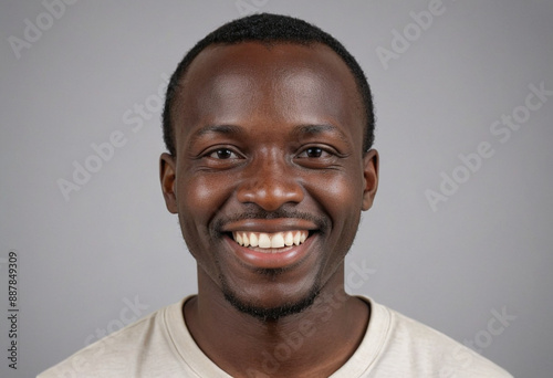 Portrait view of a regular happy smiling Guinea-Bissau man, ultra realistic, candid, social media, avatar image, plain solid background