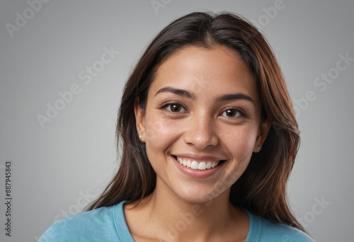 Portrait view of a regular happy smiling Honduras woman, ultra realistic, candid, social media, avatar image, plain solid background