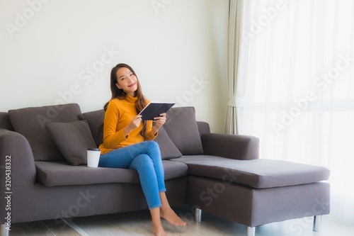Portrait young asian woman read book on sofa chair with pillow in living room