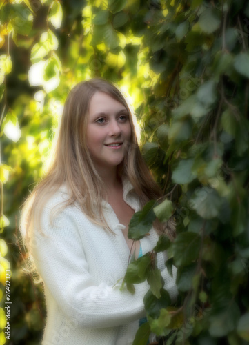 girl, woman, blond, hair, long, female, nature, outside, natural, cold, warm, cold, freeze, smile, sun, fashion, wool, light, bright, laugh, coat, coat, knitted, model, skin, clean, pretty, sweet, cute, bewitching, young, young, schoolgirl, portrait, background, green, pensive, dream, tree